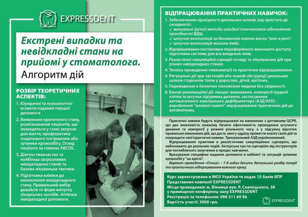 Врахування специфіки надання допомоги в кабінеті та ситуацій зупинки кровообігу "на кріслі".