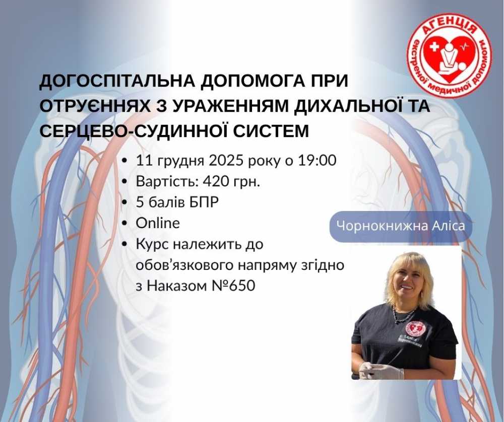 Догоспітальна допомога при отруєннях з ураженням дихальної та серцево-судинної систем