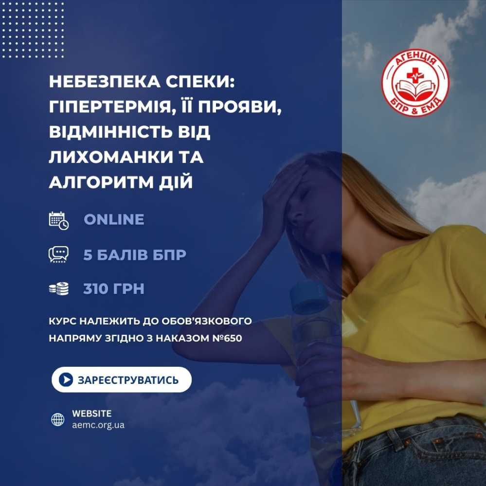 Небезпека спеки: Гіпертермія, її прояви, відмінність від лихоманки та алгоритм дій.