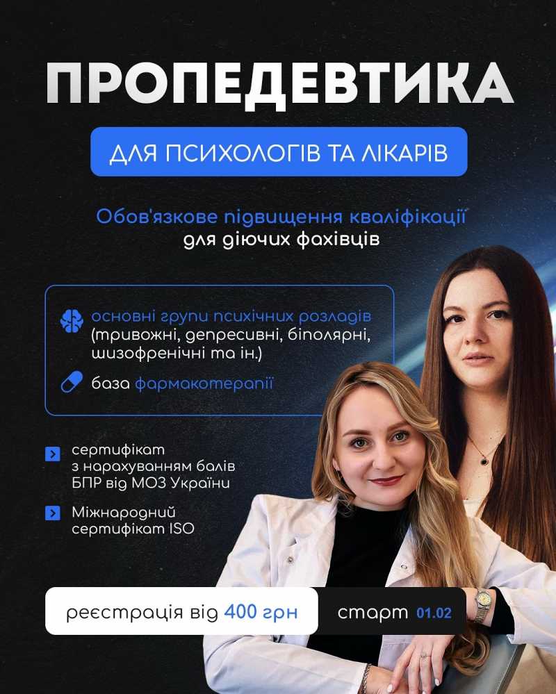 Лікарська / фармацевтична спеціальність: Дитяча неврологія, Дитяча психіатрія, Загальна практика - сімейна медицина, Медицина невідкладних станів, Медична психологія, Неврологія, Психіатрія, Психотерапія