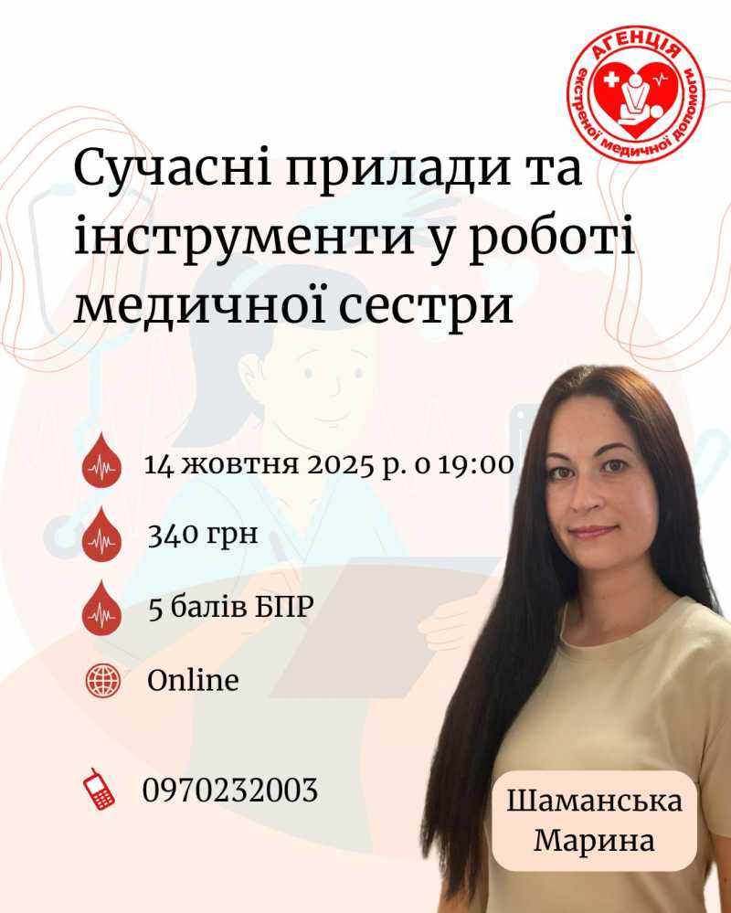 💉 Онлайн майстер-клас «Сучасні прилади та інструменти у роботі медичної сестри»