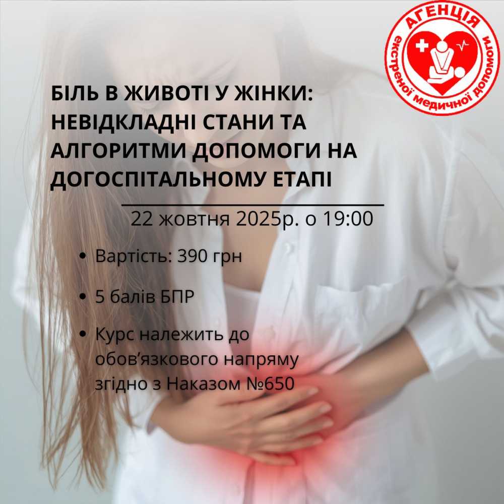 📍 Біль в животі у жінки: невідкладні стани та алгоритми допомоги на догоспітальному етапі