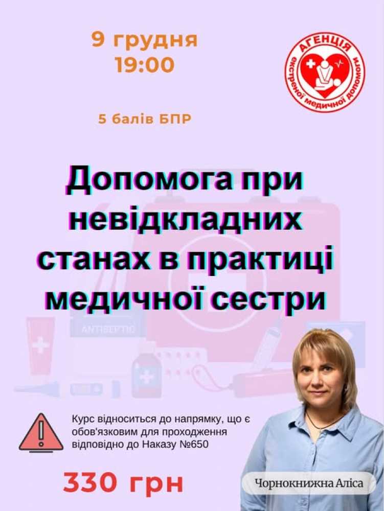 💻 Онлайн майстер клас: "Допомога при невідкладних станах в практиці медичної сестри"
