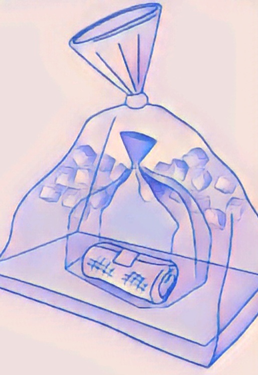 ►цей пакет чи контейнер з частиною тіла всередині слід помістити до іншого пакета з льодом або крижаною водою та зав’язати його теж.
