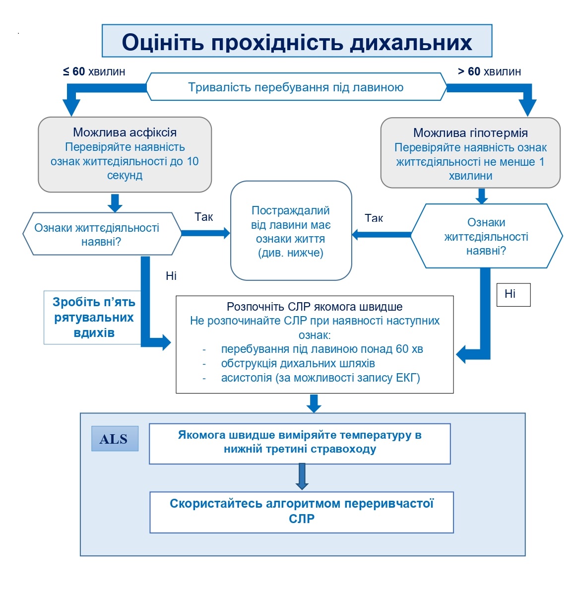 Пропонуємо вам алгоритм першочергових рятувальних дій постраждалому від лавини