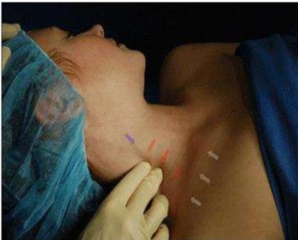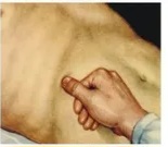 При огляді передньої черевної стінки можна побачити гіперпігментацію в ділянці правого підребер’я, що може вказувати на те, що пацієнт прикладав грілку до цієї ділянки при подібних нападах, які виникали раніше.