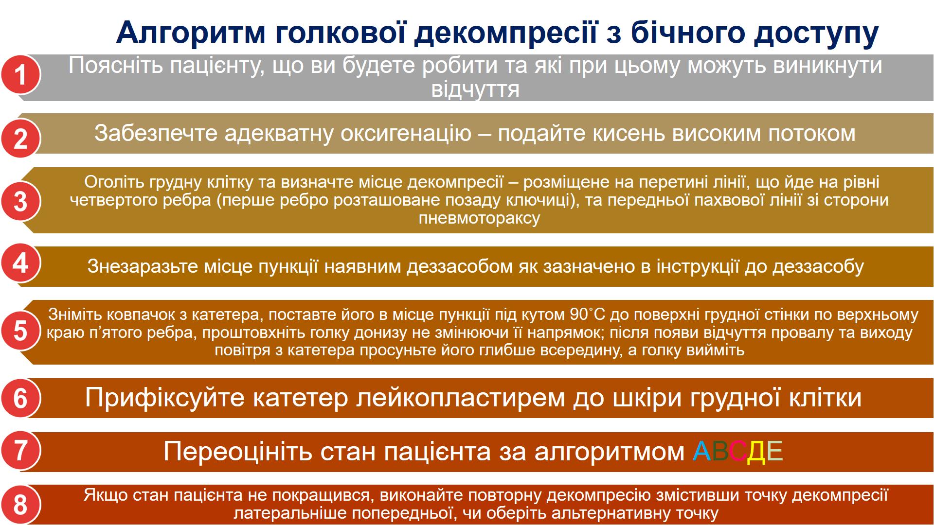 Напружений пневмоторакс - алгоритм голкової декомпресії з бічного доступу